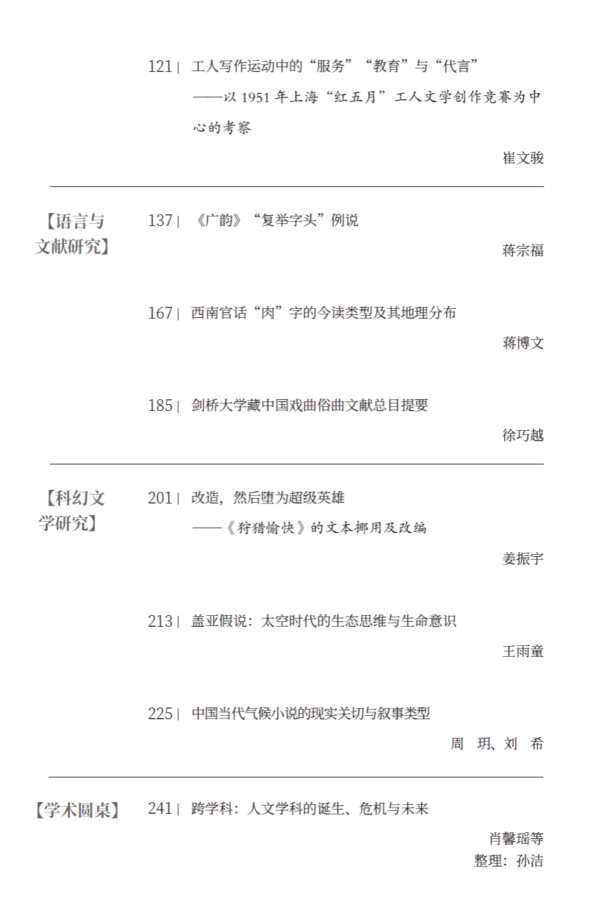 在用稿标准上,本刊奉守正创新原则,既鼓励中国语言文学领域精深的传统研究,亦欢迎跨学科的学术探讨与学术争鸣,尤其是具有鲜明问题意识、注重学术性和理论性、能反映本学科前沿和研究热点的论文。我们相信,有海内外同仁的鼎力襄助,《文字斋集刊》不仅能赓续重庆大学的文脉,更将助力于中国语言文学研究的推陈出新。对此,我们热切期盼!
