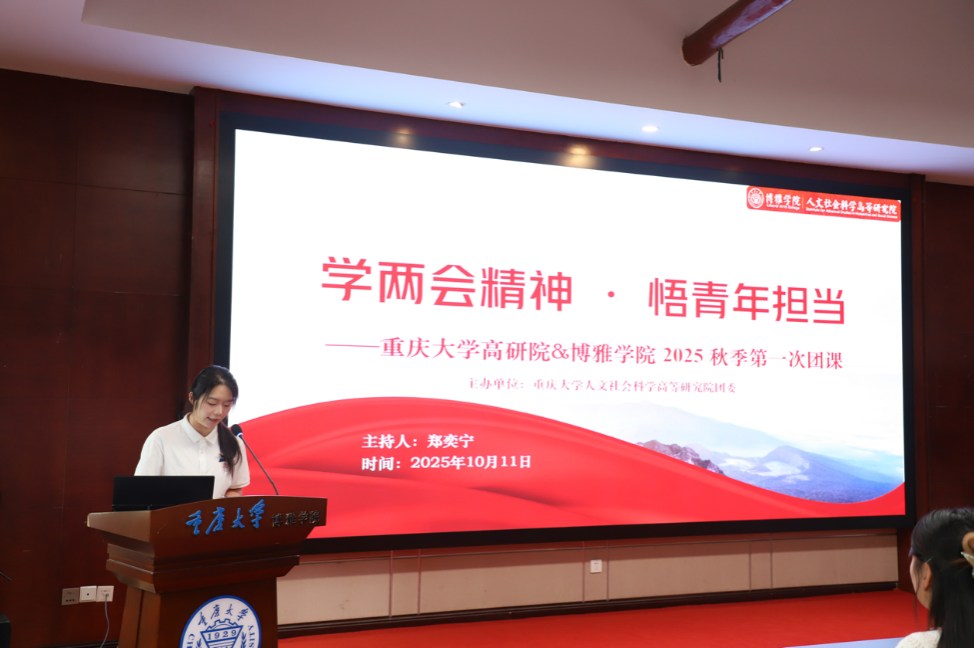为了强化团员青年的思想引领与责任担当,重庆大学人文社会科学高等研究院&博雅学院于2025年10月11日至19日集中组织开展了以学铸魂、以行赋能的系列主题学习活动。该系列涵盖四次理论课程与一次实践研学,内容丰富、形式多样,引导学院广大青年学子准确把握国家发展动态,自觉将个人成长融入国家发展大局。