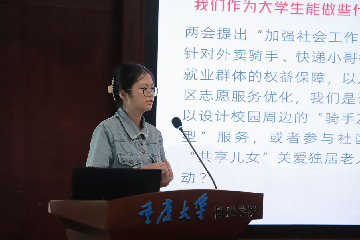 随后的讨论环节气氛热烈,同学们围绕青年在人工智能与未来产业中的优势、服务新就业群体与社区、个人成长与国家需求结合等议题展开深入交流。同学们提出了诸如利用AI进行古籍研究与内容优化的见解和非遗保护、组织校园志愿活动、服务基层乃至投身中西部乡村振兴的构想与决心,充分展现了团员们将专业所学与国家战略紧密结合的智慧与担当。