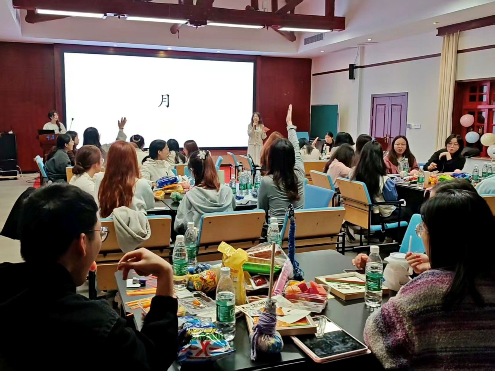 第三个游戏“字音谜城”则通过图像猜解成语,别具一格地激发了同学们的想象力。现场气氛活跃,欢笑与喝彩交织,成功将传统文化融入轻松趣味的互动之中。