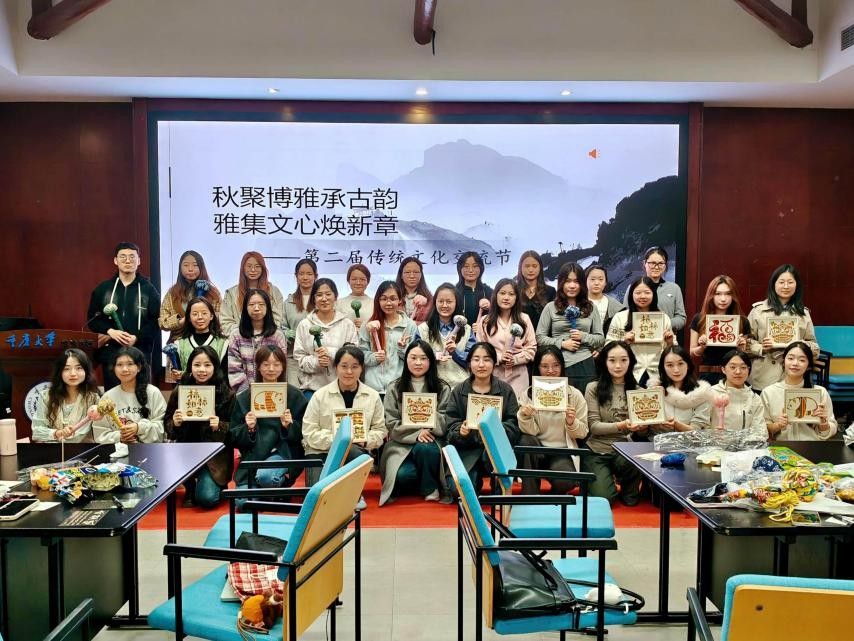 活动尾声,同学们手持自制的手工艺品合影,同学全体合影留念,共同记录这个充满雅韵与温情的夜晚。为本次文化交流节画上圆满句号。