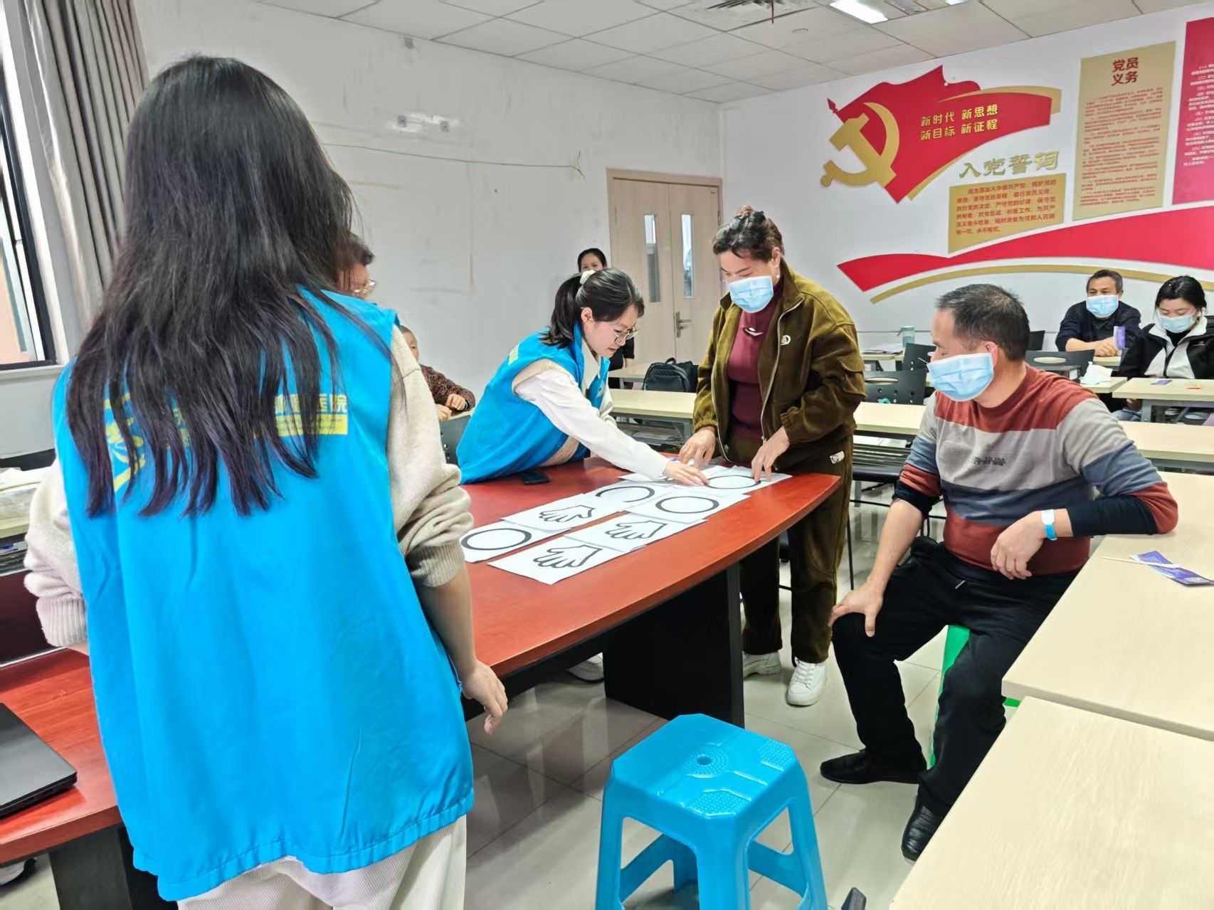 接着是“左手方右手圆”手脑协调游戏。志愿者从慢到快演示手势,患者们逐个挑战。有人动作很快,有人慢半拍但笑得很开心。每位完成挑战的人都拿到了小奖品,一位患者笑着说:“好久没这么动过脑子了,感觉自己年轻了。”