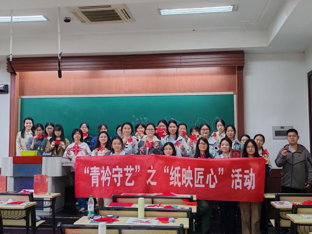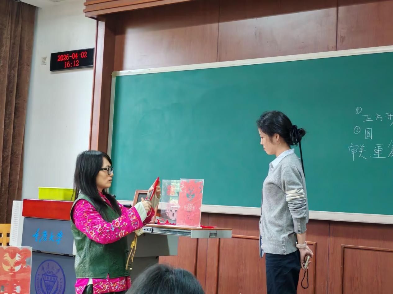 为传承中华优秀传统文化,推动非遗技艺进校园,让青年学子近距离感受传统剪纸的艺术魅力,2026年4月2日,重庆大学学生与子同袍汉文化协会在A区小竹林与五教A5109教室,成功举办“青衿守艺”之“纸映匠心”第一期非遗剪纸体验活动。活动特邀重庆市“堰兴剪纸”市级非遗传承人徐雪玲老师亲临授课,吸引80余名学子踊跃参与在指尖灵动间体悟非遗底蕴,传承雅韵匠心。