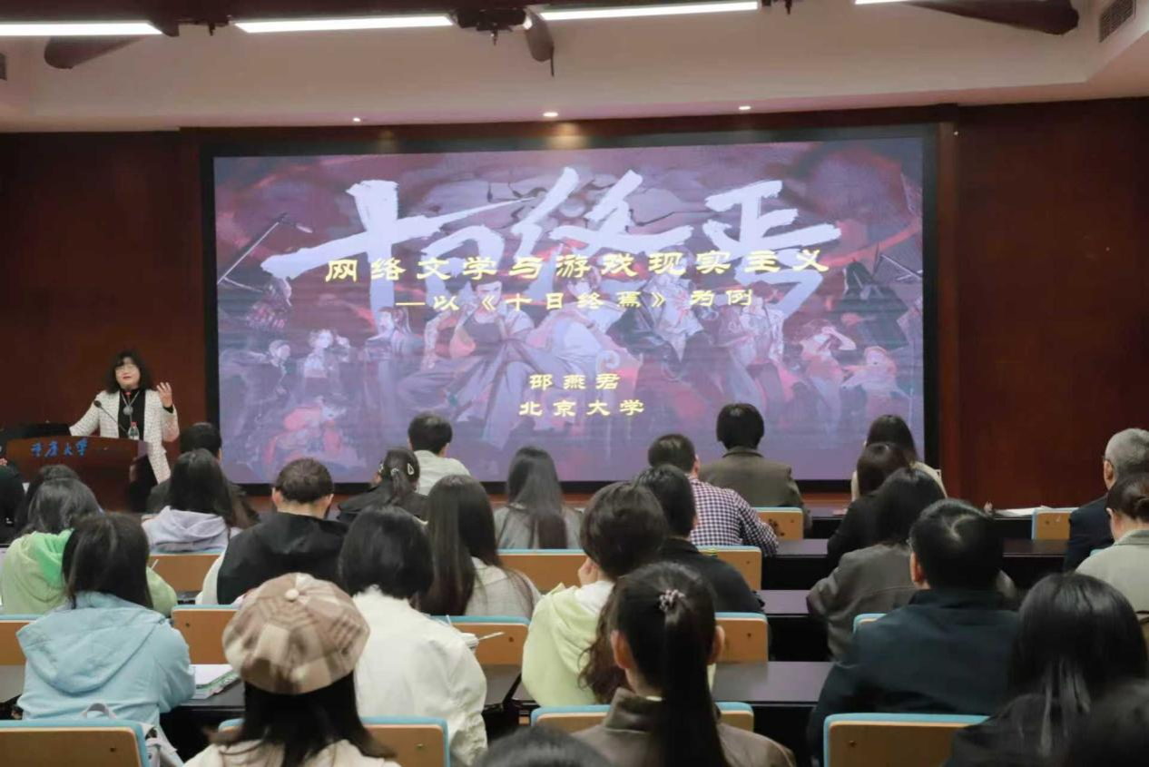 2025年11月3日,重庆大学文字斋讲座第212讲暨四十二史科幻人文系列讲座第17讲在博雅书院报告厅顺利举行。本次讲座由重庆大学人文社会科学高等研究院&博雅学院主办,重庆大学中国语言文学系、重庆大学科幻文学与科技人文研究中心、重庆大学创意写作基地承办,北京大学邵燕君教授主讲,以 “网络文学与游戏现实主义” 为主题,对《十日终焉》代表的网络文学新变进行研讨。讲座由重庆大学中文系副教授刘洋老师主持,吸引校内外众多师生参与讨论。